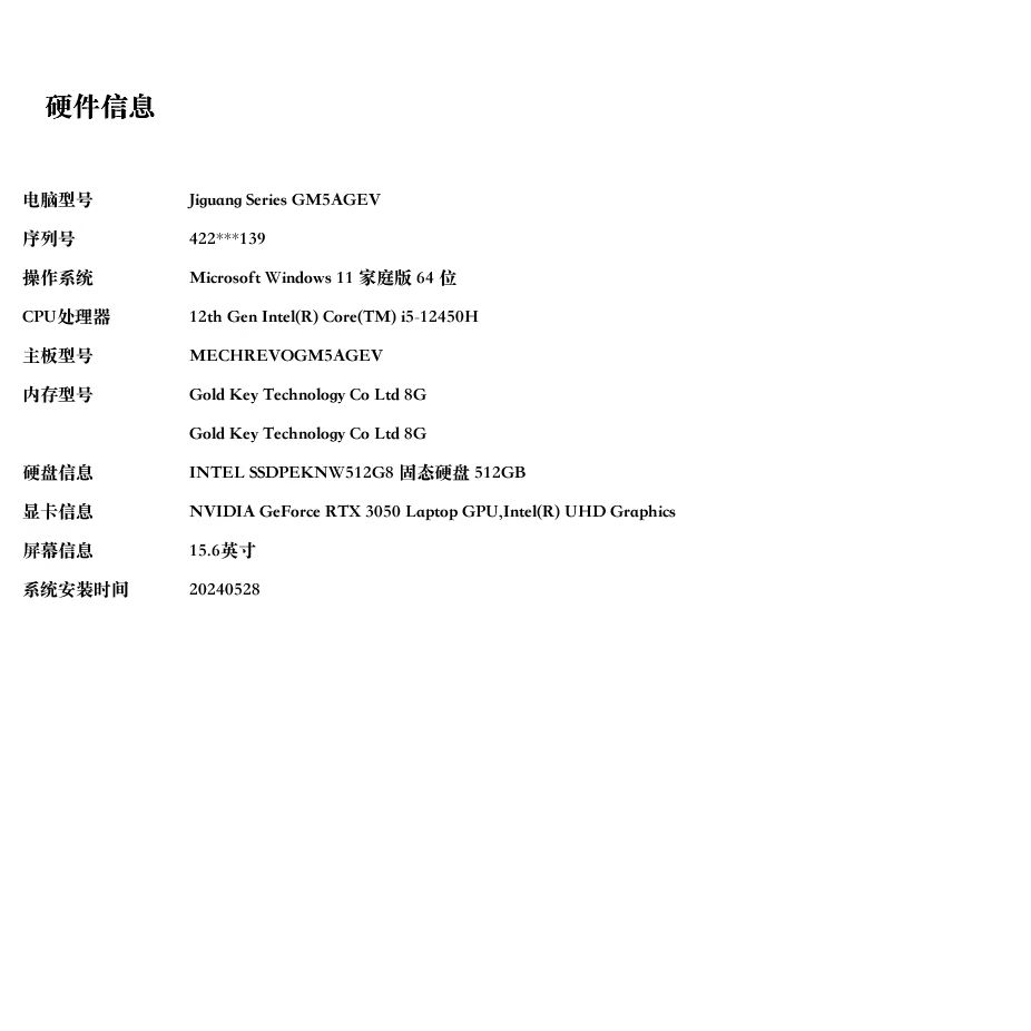 CPU型号:i5-12450H